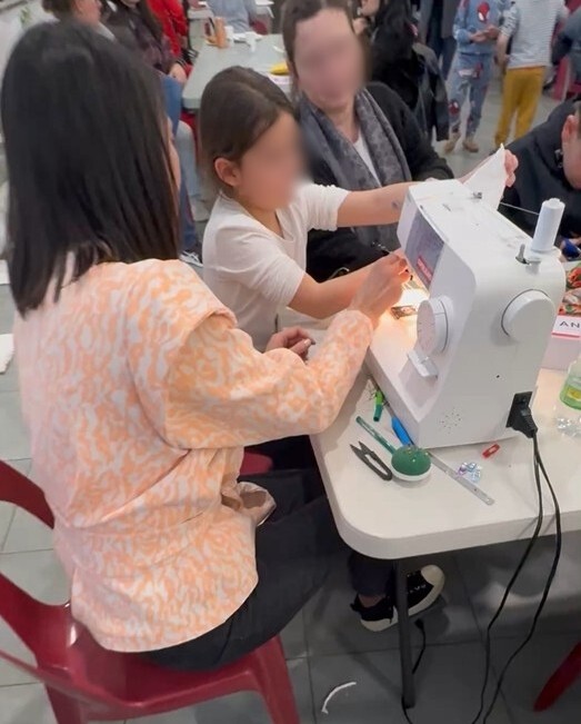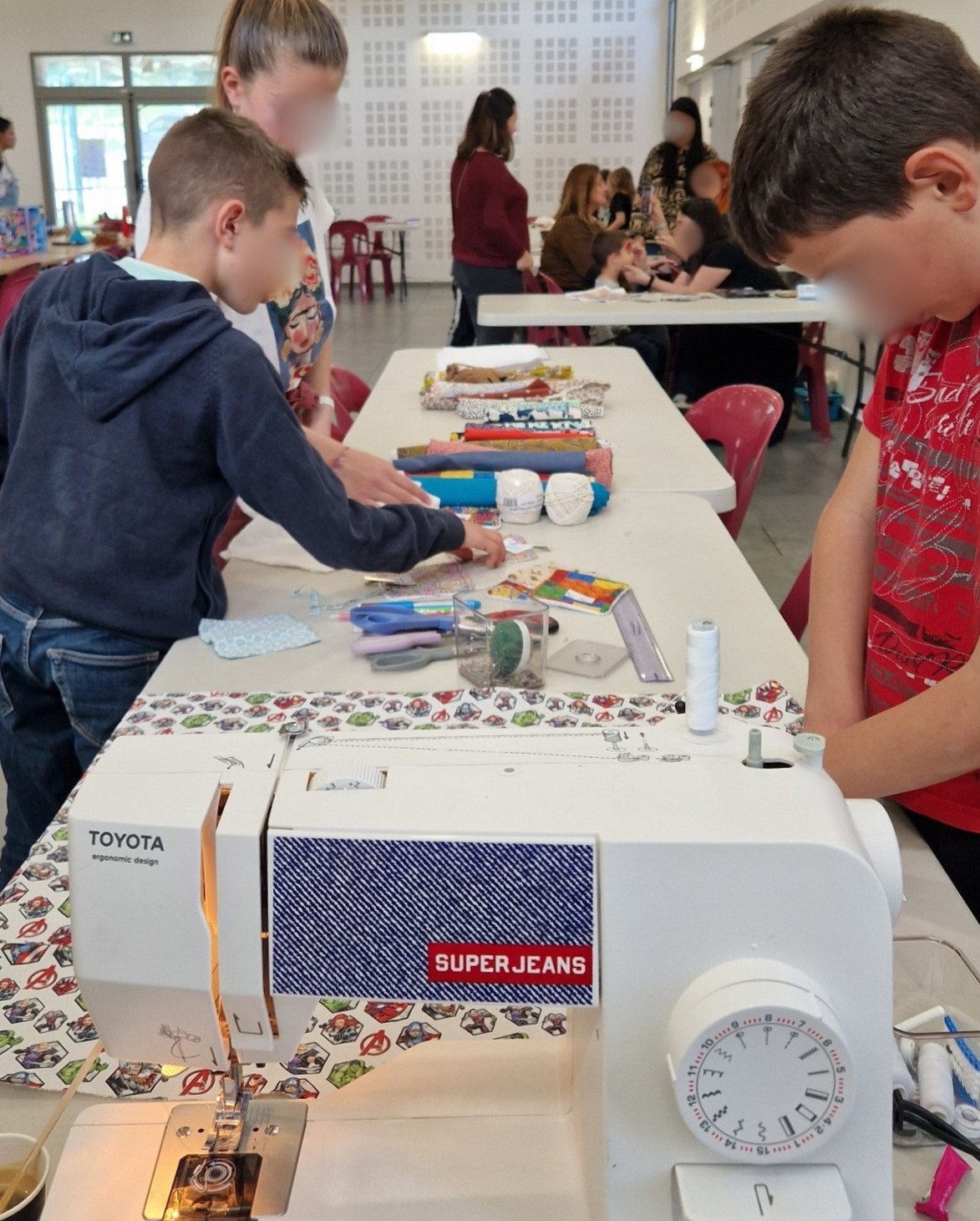 Je me déplace avec tout le matériel nécessaire pour animer des ateliers couture participatifs, accessibles aux enfants comme aux adultes.