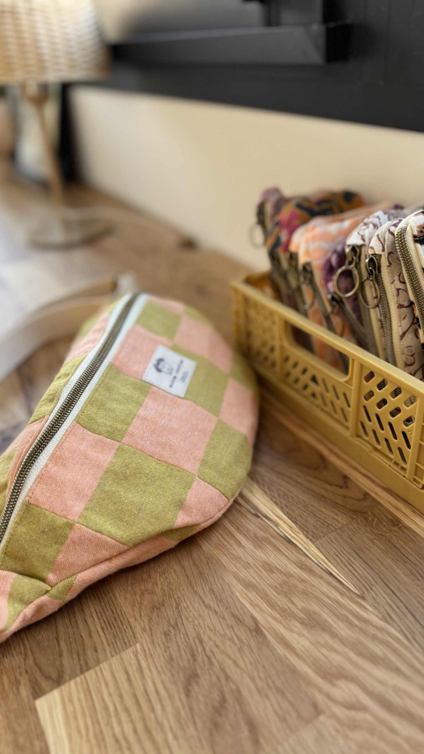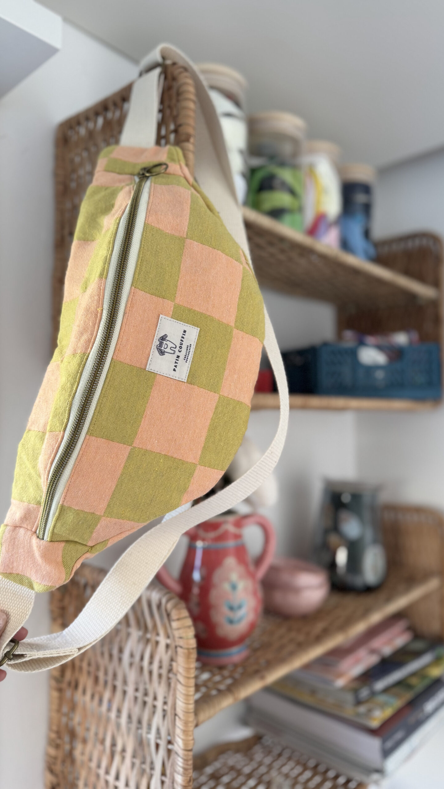 Banane en jacquard, damier, couleur vert pistache/abricot
