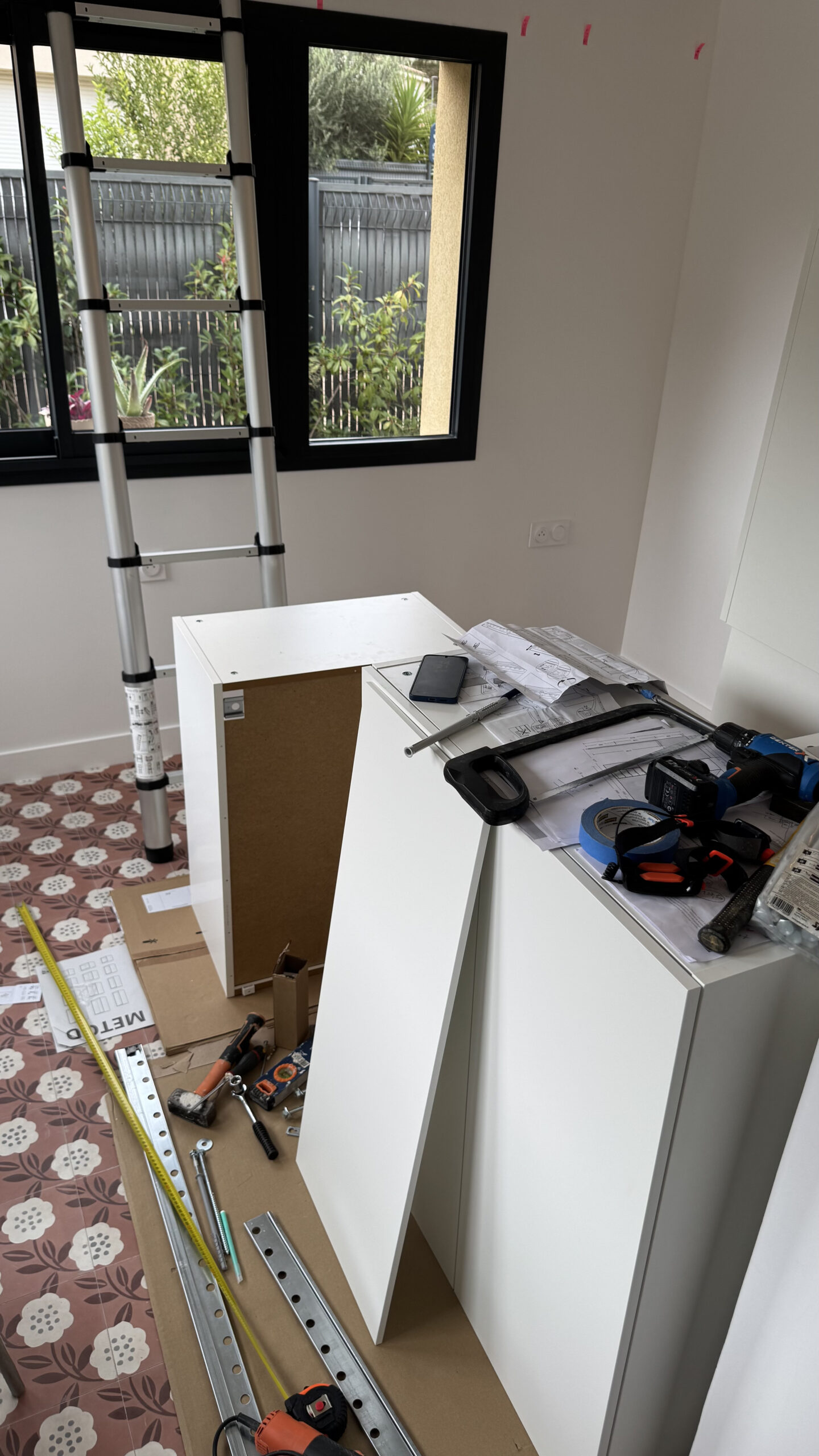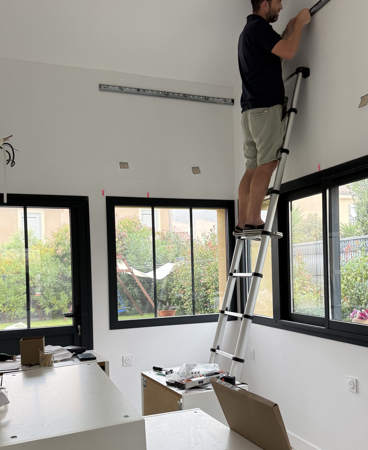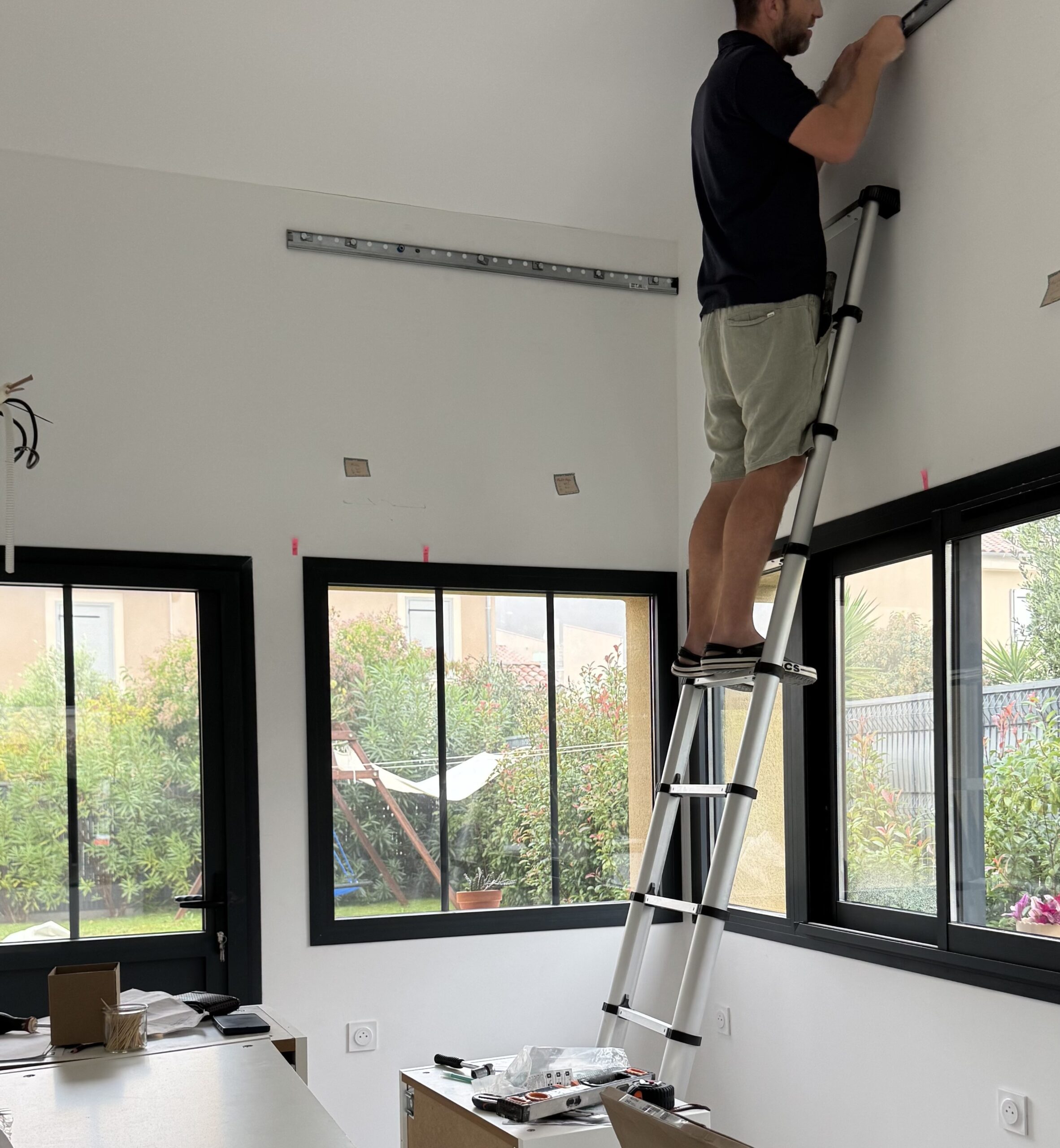 Les travaux ont ensuite continué avec la pose des fenêtres ! Quelle satisfaction. La pièce a pris forme. Sont venus ensuite : l’électricité, l’isolation, la plomberie, le placo (on a…